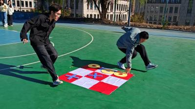 团体赛则涵盖迫击炮、奔跑吧井字棋、纵横天下、跳大绳四大趣味项目,要求 7 人组成一队,进行协作配合并累积积分,其中最激烈的便属奔跑吧井字棋项目,参与者们既需奔跑争夺棋子位置,又要短时间内思考如何攻破对方棋形并让己方胜利 。这些项目打破传统运动的单一模式,将体力考验、智慧博弈与团队协作深度融合,让同学们在趣味比拼中挥洒汗水,凝聚团队力量。