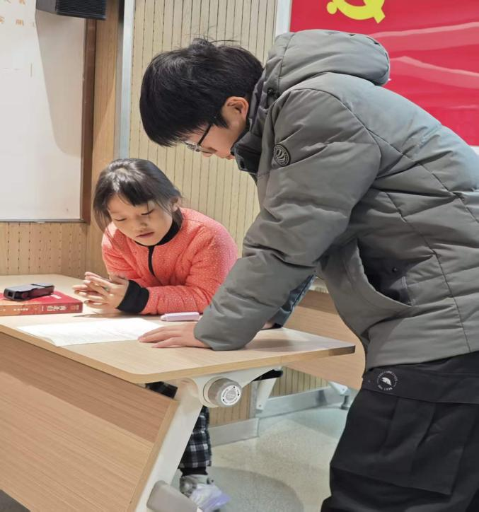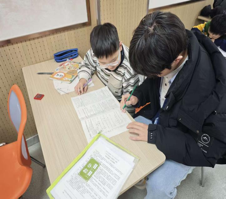 2026年1月22日至23日,甸柳新村一区社区教室内学习氛围浓厚。山东大学软件学院“泉润育禾支教队”的志愿者们继续在此开展寒假助学活动,围绕语文、数学、英语三科内容,为社区小学生提供细致耐心的作业辅导,陪伴他们踏实完成每日学习任务,以知识和关怀照亮成长之路。