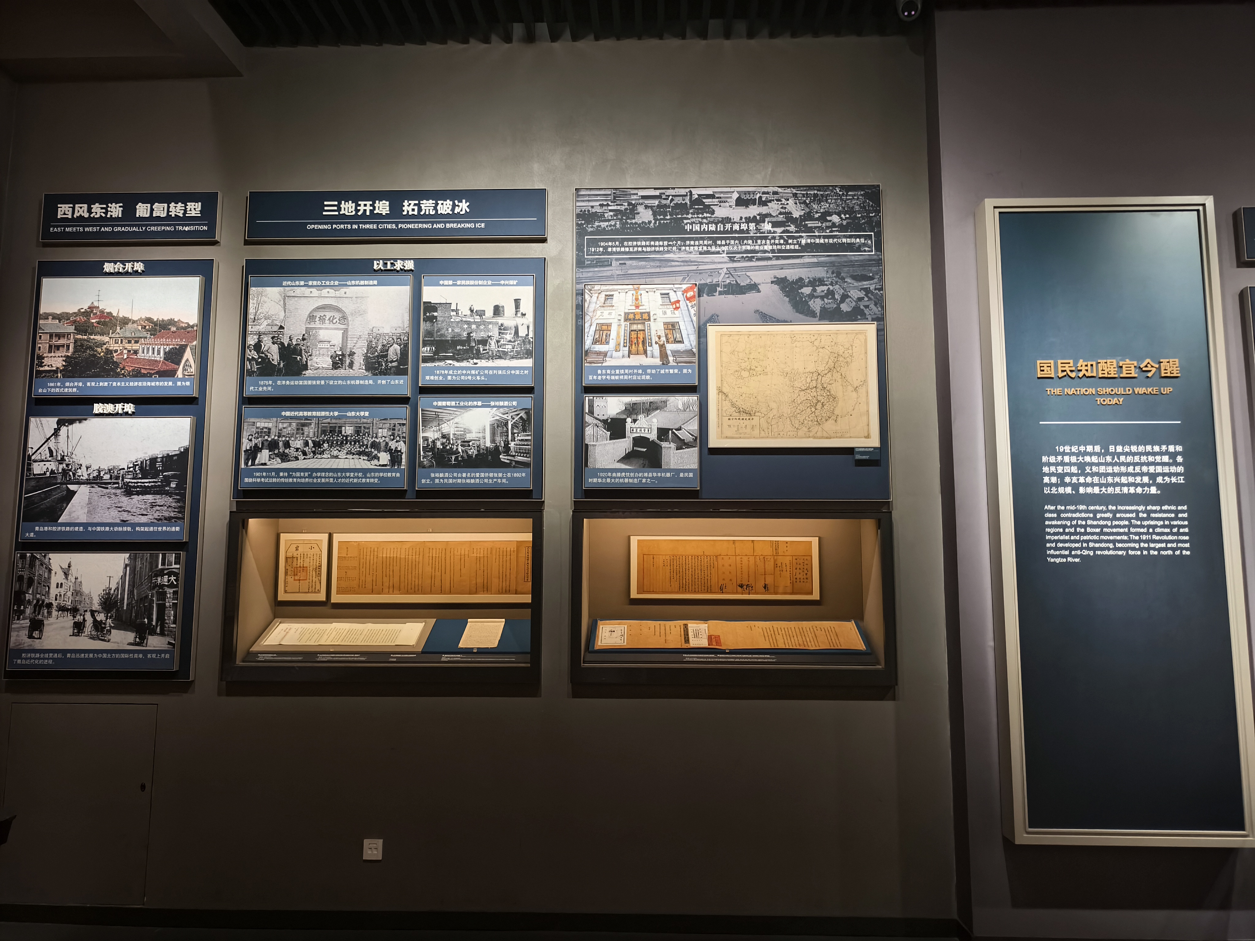 沿着展厅动线前行,红色的历史篇章缓缓展开,邓恩铭、王尽美等革命先驱的名字与事迹令人动容。胶济铁路和四方机车厂工人大罢工,胶济铁路总工会成立,掀起了青岛工人运动的高潮。展厅内的历史照片、文献资料,生动再现了当时工人兄弟们团结一心、奋起抗争的壮阔场景——他们不畏列强与反动势力的镇压,以铁路为战场,用罢工抗争捍卫自身权益,更将革命火种播撒在胶济铁路全线,让这条铁脉成为山东传播红色思想最快的地方。