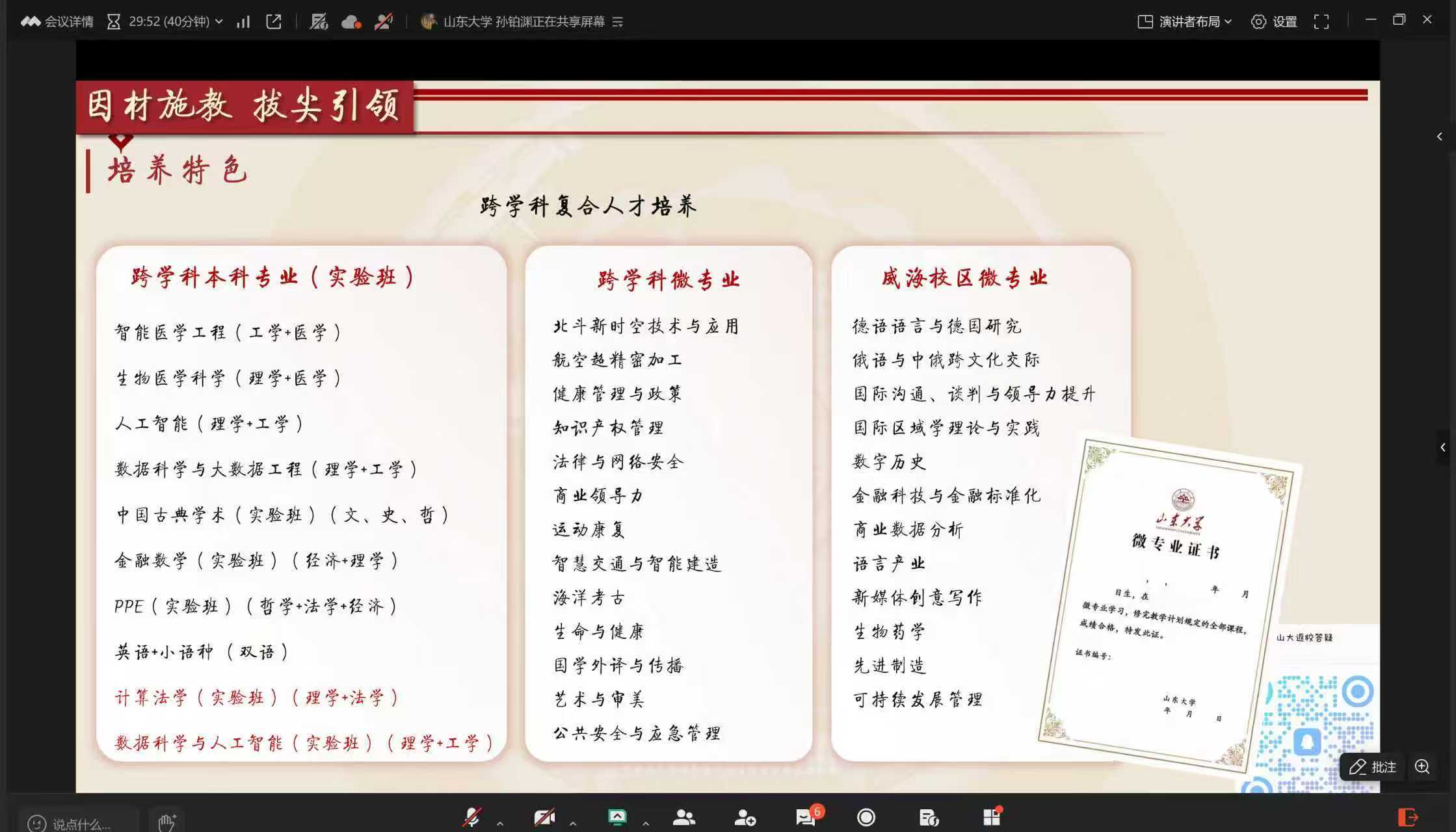 本次线上宣讲共吸引 约 100 名高中生 参与。宣讲过程中,团队成员围绕大学阶段的学习节奏、课程安排及个人发展路径进行分享,引导同学们结合自身兴趣与实际情况,理性思考未来的学习与发展方向,取得了良好的宣讲效果。