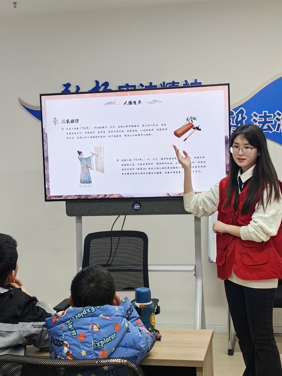 科学实验的余温尚未褪去,朱永康老师又以 “诗人另一面” 为题,开启了一堂别开生面的诗词课。老师没有局限于课本中的刻板印象,而是通过杜甫的忧国忧民、李清照的婉约与豪情、辛弃疾的壮志难酬,为孩子们展现了诗人鲜活立体的形象。一个个生动的故事,让诗词不再遥不可及,孩子们听得入迷,对诗词的兴趣愈发浓厚。