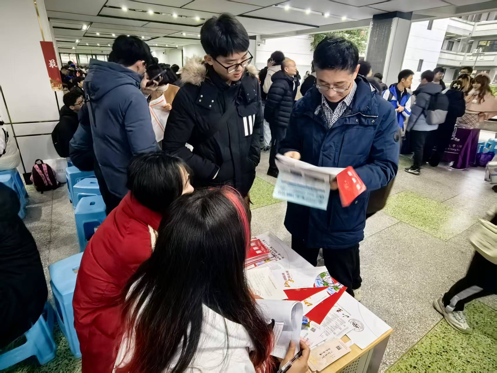 面对南方地区对山大认知度较低、初期咨询人流少的问题,团队齐心协力主动宣传,不仅现场积极吆喝,还前往其他高校摊位热情“推销”,成功吸引大批师生家长咨询,宣传折页全部派发完毕。