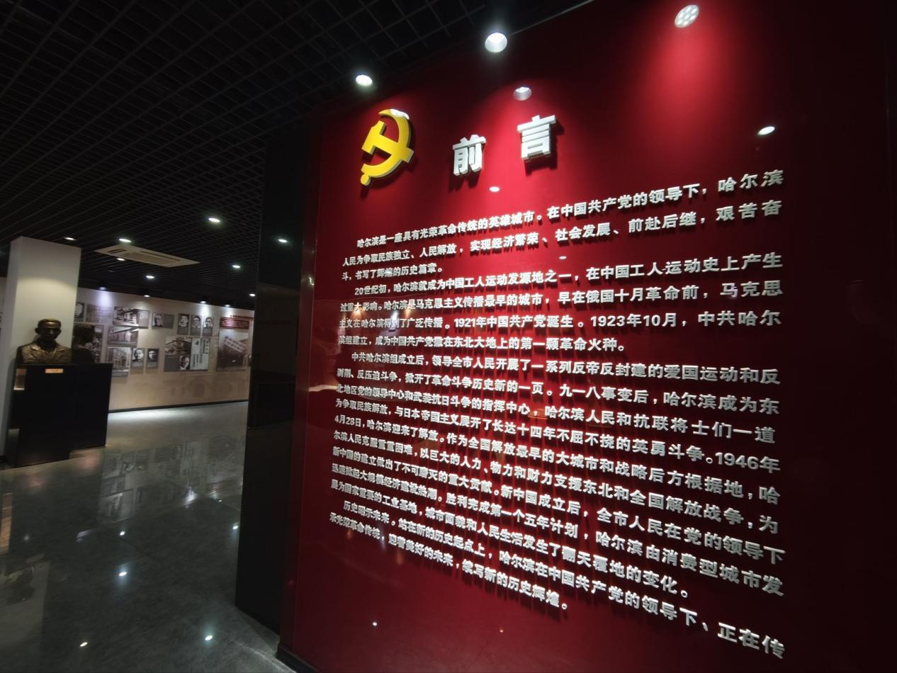 哈尔滨党史纪念馆坐落于哈尔滨市道外区,馆内陈列着近千件历史文物、照片和文献资料,全面展现了哈尔滨作为 “共和国长子” 的红色基因。实践队依次参观了 “播火传薪”“艰苦卓绝”“迎接解放”“建设家园” 等展厅,从中共早期党员在哈尔滨的革命活动,到东北抗日联军的浴血奋战,再到新中国成立后哈尔滨的工业建设成就,一幅幅历史画卷在队员们眼前徐徐展开。