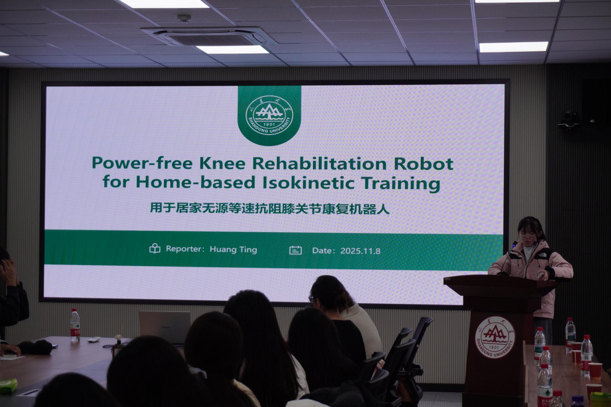 学术分享环节聚焦前沿成果与实践需求,软件学院赵阳同学以 “医工交叉技术研发与应用实践” 为主题,详细拆解了多个核心研究方向的技术逻辑与落地成果。他重点介绍了基于机器学习的疾病风险预测模型 —— 该模型通过整合临床护理数据与健康监测数据,可实现慢性病早期预警与干预建议生成;同时分享了智能康复设备的研发历程,为护理工作的精准化、高效化提供了技术解决方案。护理与康复学院黄婷同学围绕“用于居家无源等速抗阻膝关节康复机器人”展开专题分享,提出了医疗实践中对技术支撑的具体诉求,还带来了相关领域的论文分享。