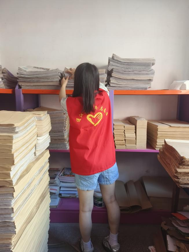 7 月 23 日至 24 日,郭娅芳的工作重心是书库内刊物报纸的整理。面对堆积的报刊,她严格依照图书馆馆藏管理规范,先按出版物周期(日报、周刊、月刊)进行一级分类,再以出版年份为维度实施二级排序,最终依据馆藏编号精准归入对应架位,同时将每一份刊物信息详细记录到电子文档中。整理过程中,遇到刊名模糊的刊物,她便通过查询馆藏系统确认信息,确保每一份文献都能被精准定位。这看似简单的整理工作,实则为读者搭建了便捷的知识检索桥梁,让基层群众能更高效地利用公共文化资源。